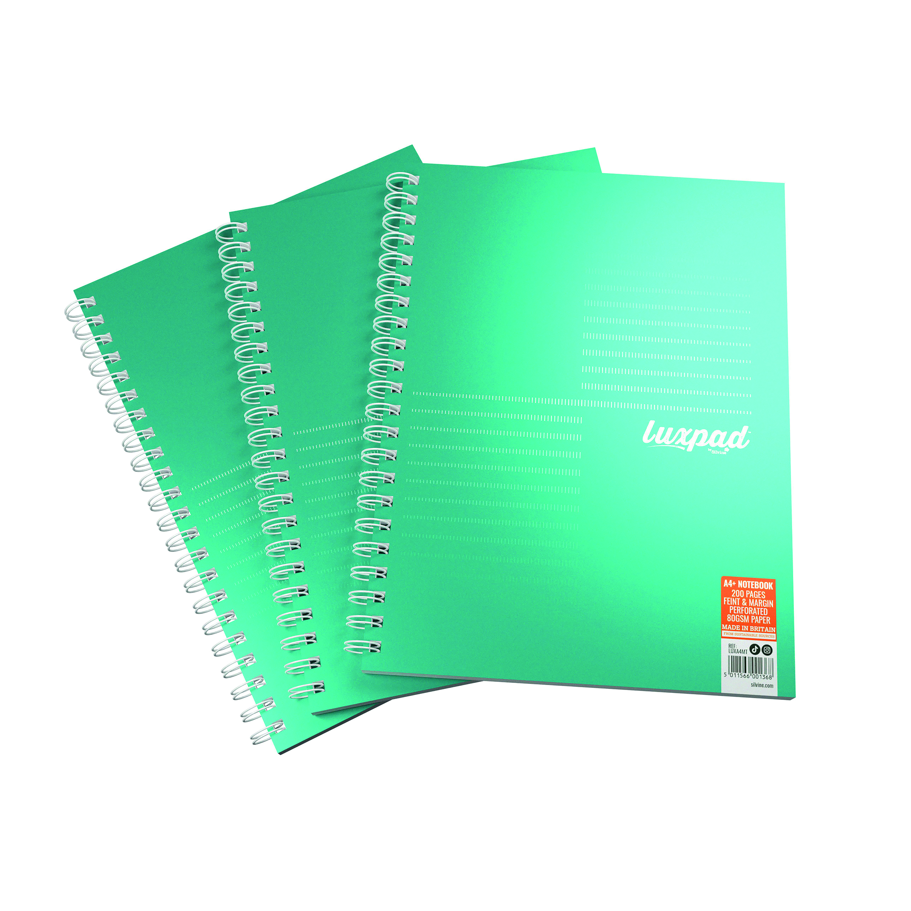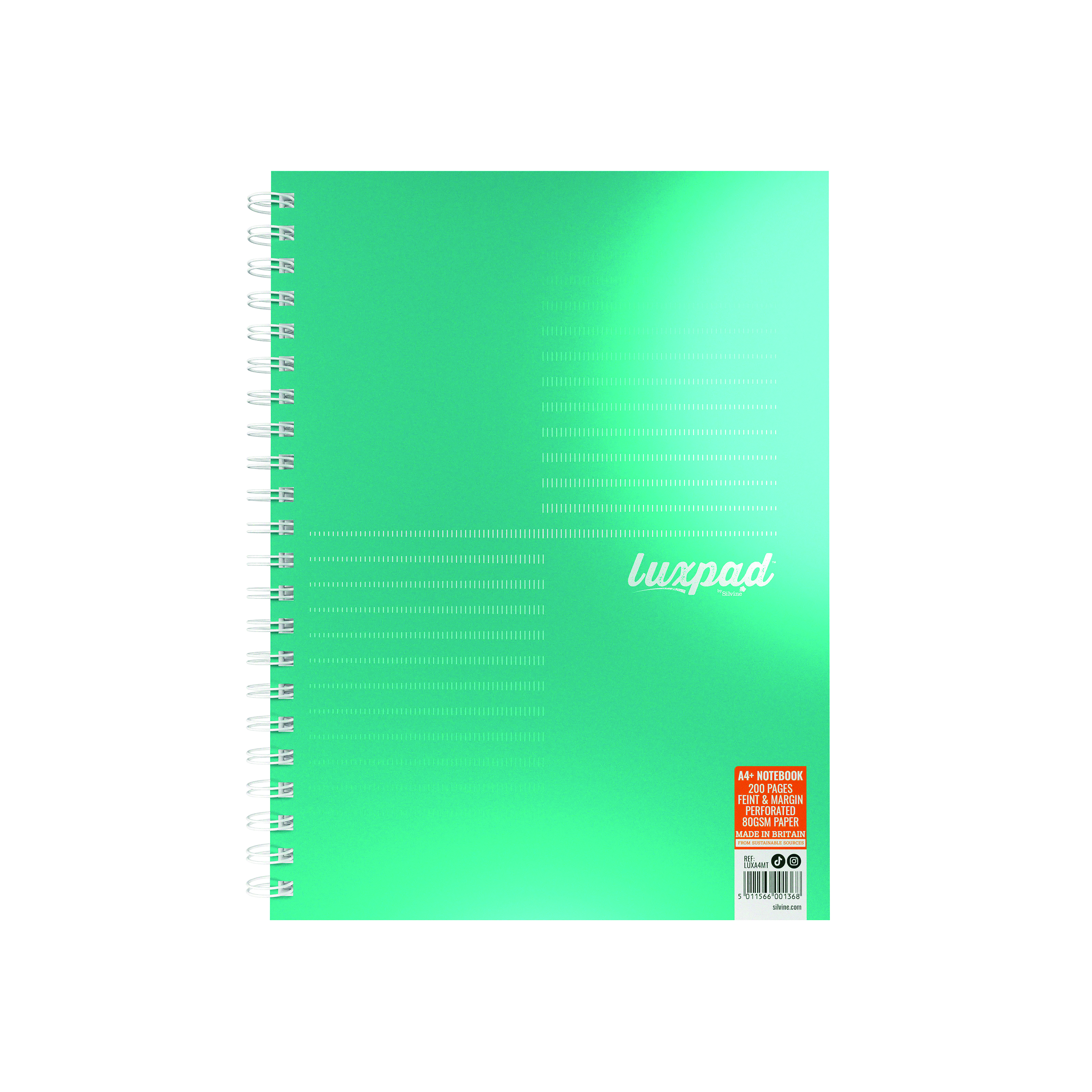 Silvine Luxpad Twin Wire FSC Notebook A4+ 200 Page Ruled With Margin Metallic Pearl Green (Pack 3) - LUXA4MT