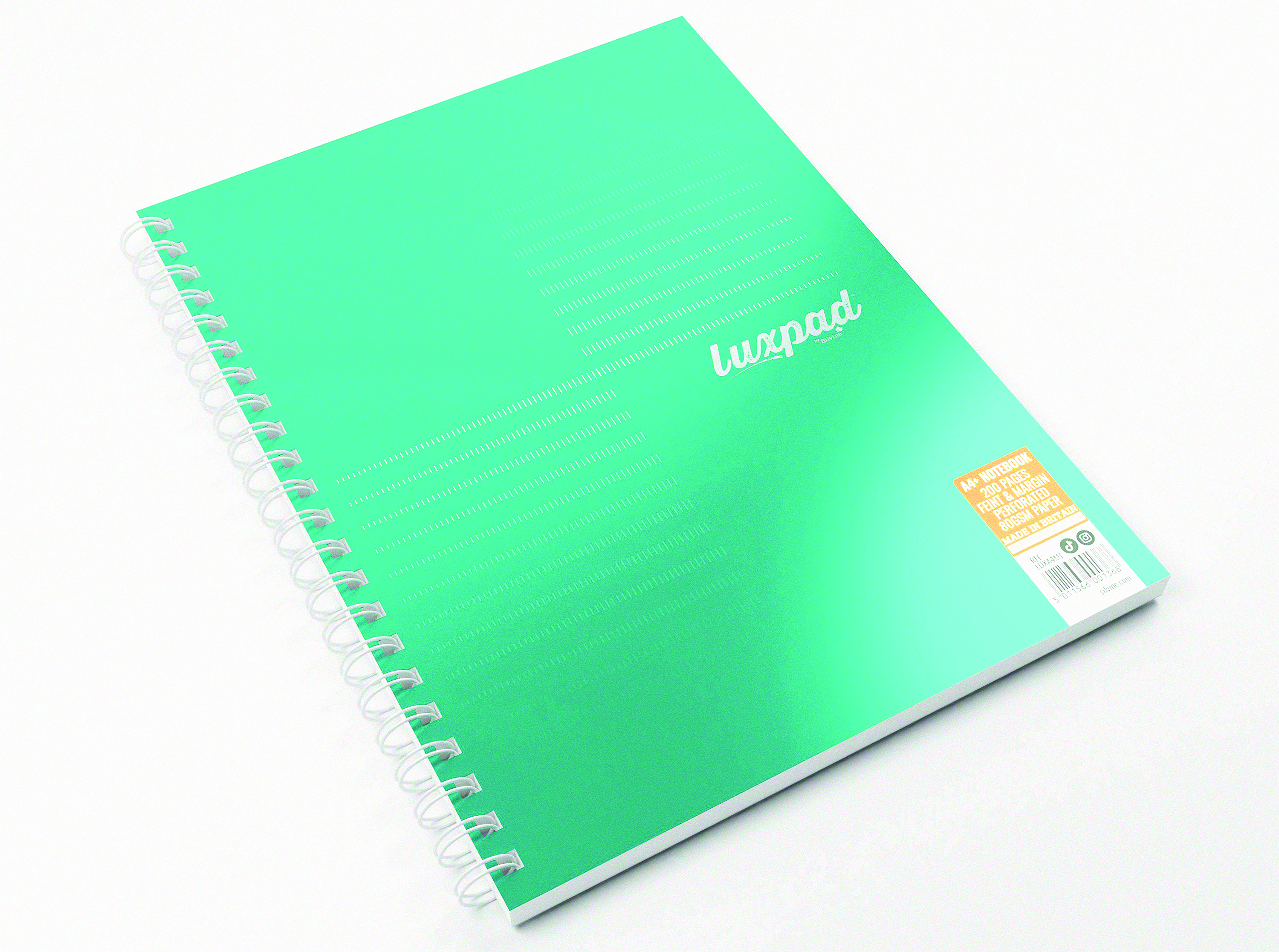 Featuring durable, glossy covers, this A4+ wirebound, hardback notebook contains 200 pages which are ruled with 8mm feint lines and margin. The climate-friendly, high-quality, 80gsm, white paper is suitable for writing on both sides without ink show-through. Featuring wire binding which allows the notebook to lie flat while open on any page and micro-perforated sheets for easy removal. Supplied in a pack of 3 in Mint.